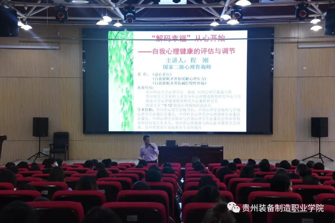 为促进学院教师身心和谐发展,掌握心理健康知识,释放压力,增强心理调节能力,保持良好的心理状态和工作热情,提升教师职业幸福感,更积极、高效地工作和生活。团委(心理健康教育与咨询中心)与教师发展中心于6月7日14:00在德润楼101报告厅联合举办以“塑造阳光心态 提升职业幸福感”为主题的心理健康专题讲座,本次讲座特邀贵州师范大学心理学院应用心理学系系主任、国家二级心理咨询师程刚教授做主讲人,学院党委副书记杨丽芳出席本次活动,260余名老师参加。
