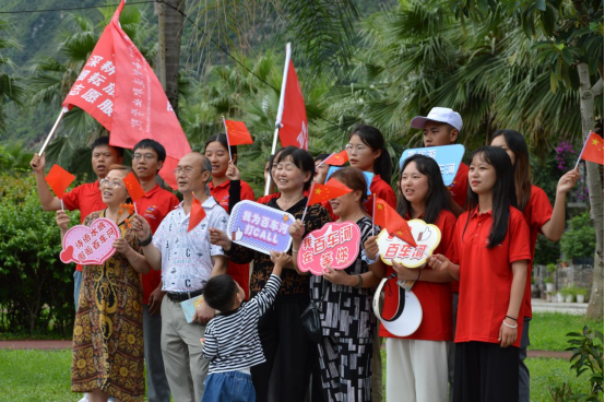 图2 志愿者在百车河景区与游客共唱红歌颂党恩