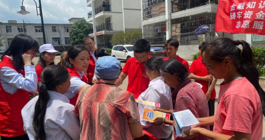 贵州银行六盘水支行,水城支行,“金融知识进社区,铸牢资金安全墙”社会实践队以金融消费者为中心,大力宣传金融消费者权益保护政策,做好公众金融知识教育和普及,维护金融消费者切身合法利益,增强抵御风险的能力。为进一步促进金融宣教形式多元化,提高群众的金融知识水平,在六盘水市水城区蟠龙镇桃苑社区举办了以“普及金融知识 守住钱袋子”为主题的金融知识宣传活动。
