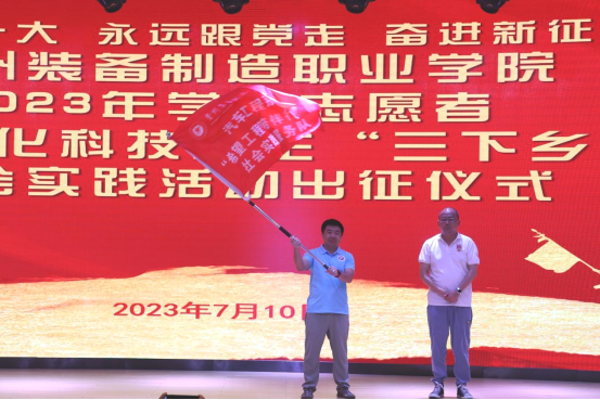 副院长孙宁岗老师为汽车工程系暑期“三下乡”社会实践活动队伍授旗