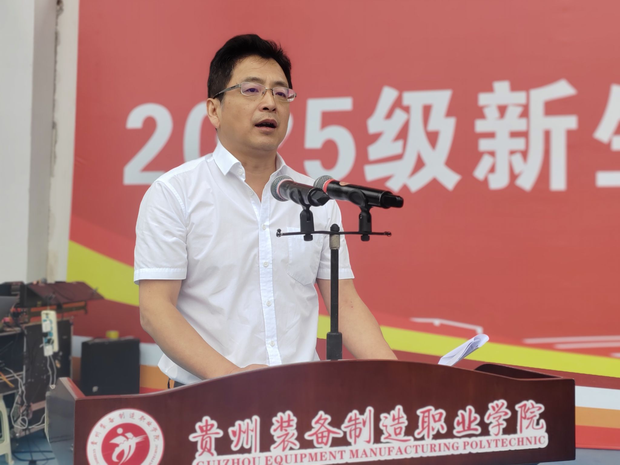 9月16日,beat365官网举行2025级新生开学典礼暨军事技能训练动员大会。校党委书记杨志宏,党委副书记、院长金焱,承训单位清镇市人民武装部上校政委王兆,党委副书记杨丽芳,纪委书记刘万千,党委委员、副院长张黔成、张克峰,党委委员、宣传统战部部长蒋永彪出席大会,学校相关部门负责人、各系部党政领导干部、军训教官、新生班辅导员(班主任)和2025级全体新生参加大会。会议由校党委委员、副院长孙宁岗主持。