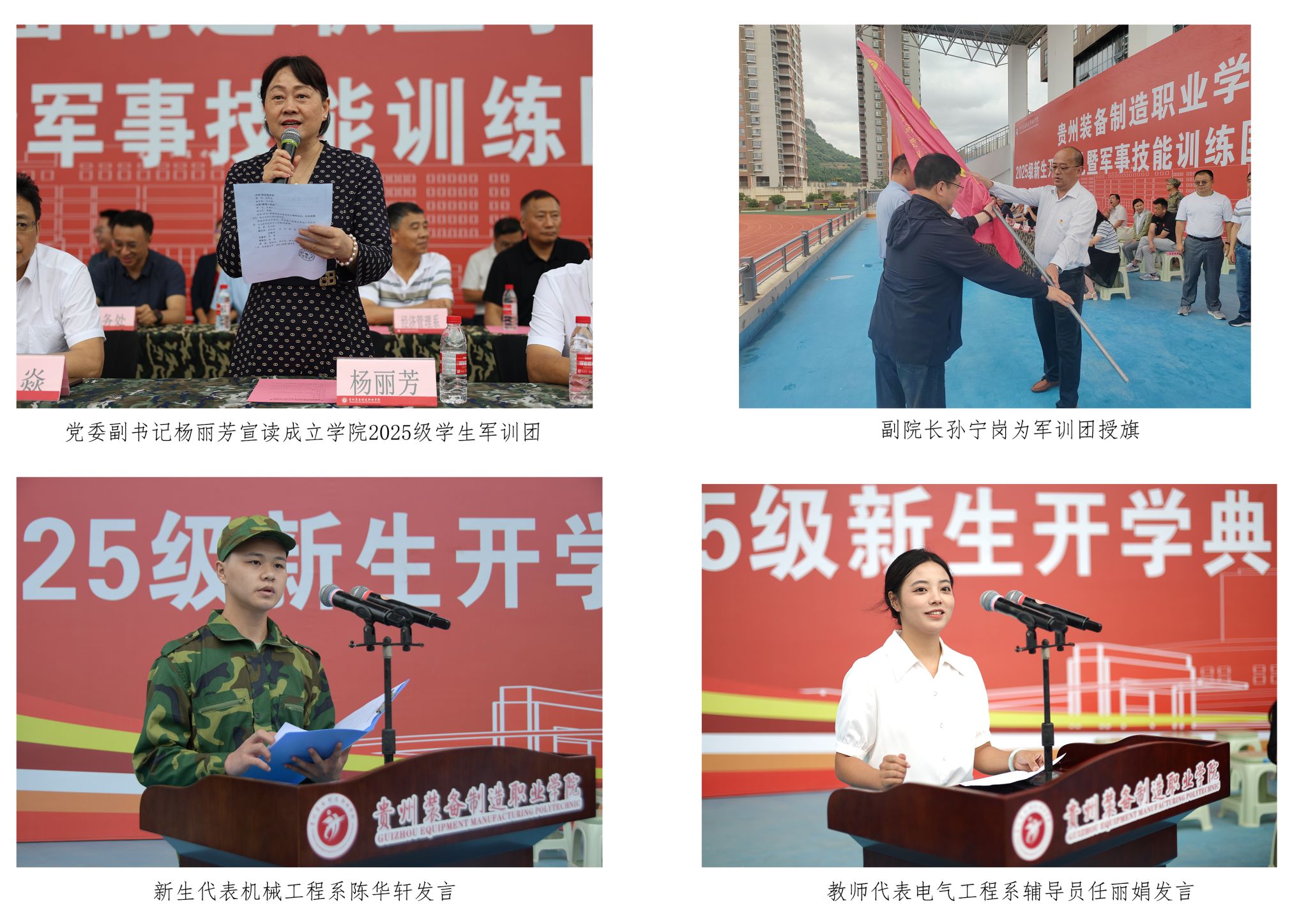 党委副书记杨丽芳宣读了关于成立学院2025级学生军训团的文件。教师代表电气工程系辅导员任丽娟,新生代表机械工程系陈华轩,分别在会上作了发言。根据安排,此次军训活动为期两周,严格的训练将为同学们的校园生活打下坚实基础。