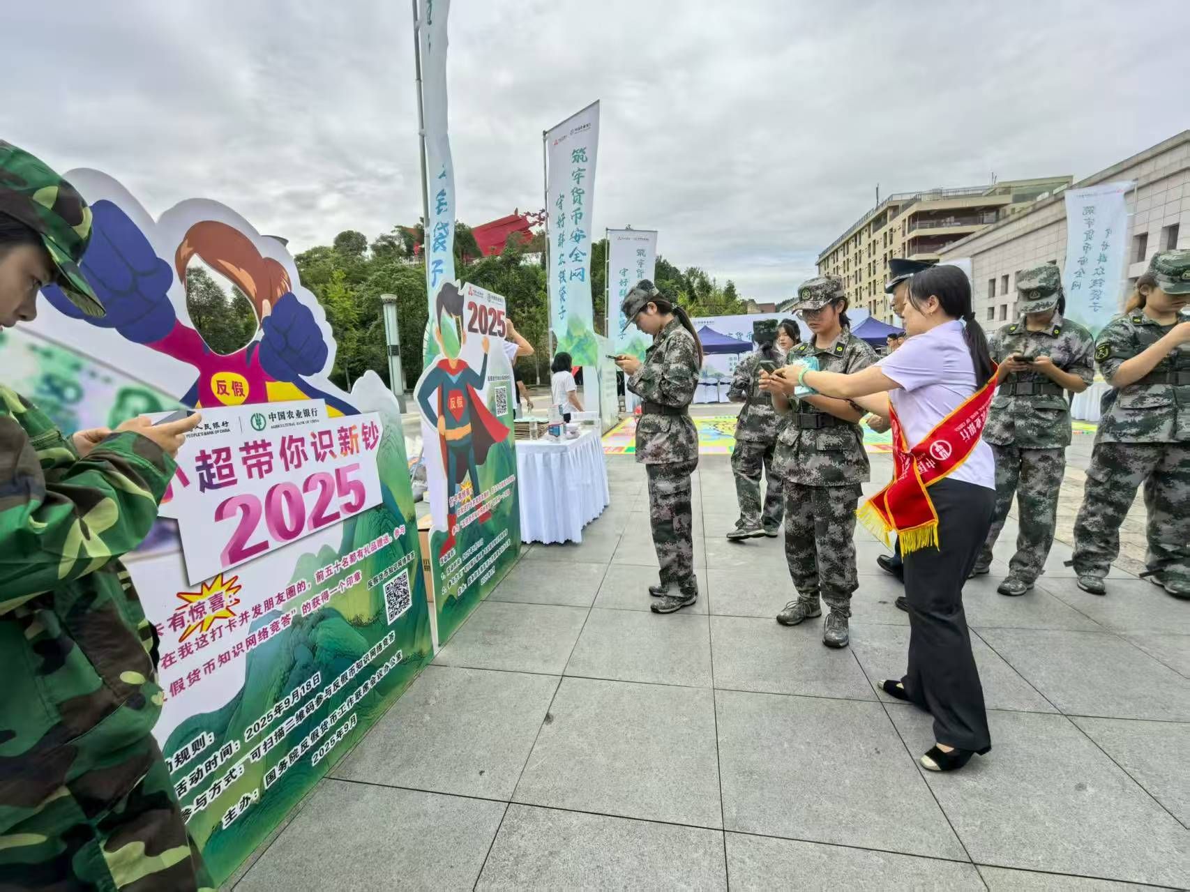 活动创新采用互动体验模式,设置了"校园反假智勇大闯关"系列环节。包括"反假小超人合影打卡""反假知识大富翁""心细如针识假币""巧手挑假币""货币守卫者"五个趣味项目,通过游戏方式帮助学生掌握人民币防伪特征和假币识别技巧。