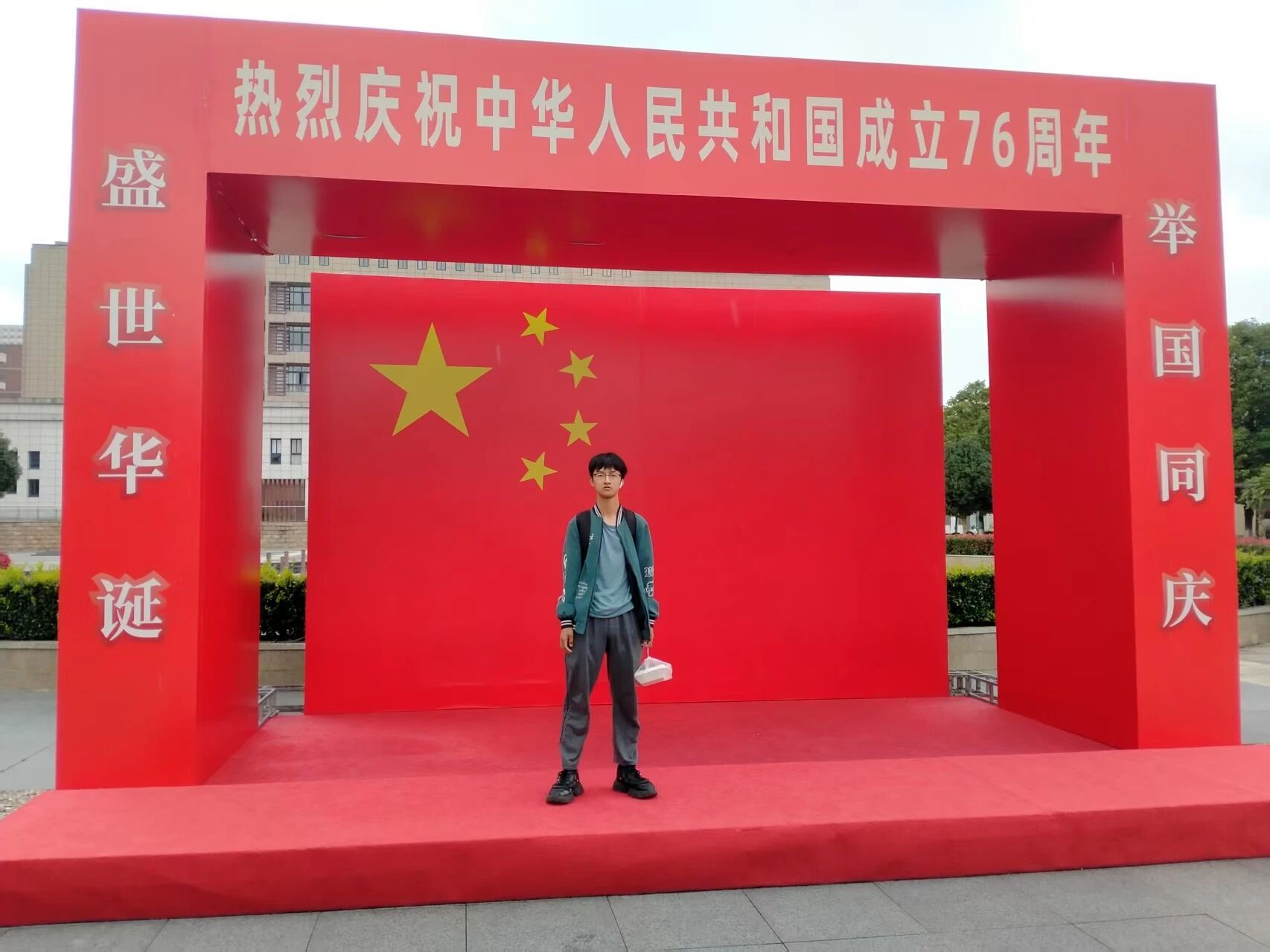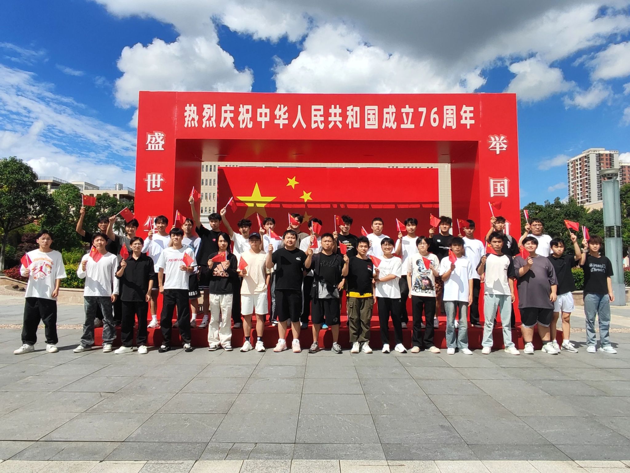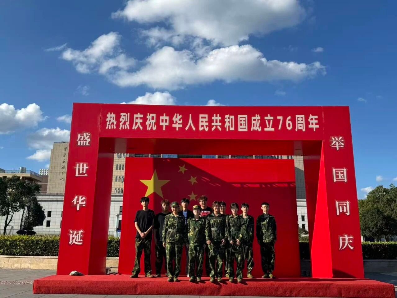 身后是熟悉的建筑物与教室,身前是象征信仰的国旗,这抹红不仅在校园里,更落在我们眼底、记在心里。这张照片里,有青春的朝气,有同窗的情谊,更有我们对祖国最清澈的祝福——愿以少年志,护这山河锦绣,祝祖国生日快乐!