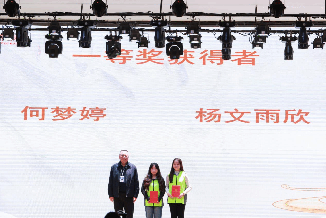 贵州省瓜灯非遗传承人黄国林,电气工程系党总支书记、主任刘忠翔,共青团清镇市委副书记高磊为荣获优秀奖参赛选手颁奖