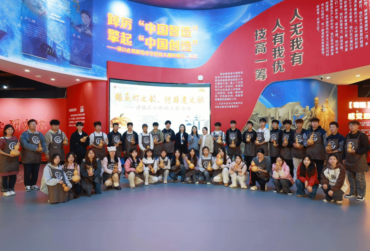 党委书记杨志宏在总结讲话中对地方政府、行业协会、中小学对学校工作的关心和支持表达了感谢。他强调,清镇瓜灯雕刻作为地方非遗技艺,是中华优秀传统文化的重要载体。中华优秀传统文化是“两个结合”的重要组成部分,以习近平文化思想为指引,传承和发展中华优秀传统文化,对于涵养社会主义核心价值观、塑造文化自信、提升中华文化软实力具有重大意义。beat365官网始终将文化传承创新作为办学核心职能之一,坚持“深耕装备制造、培育忠诚工匠”的育人目标,将“马院+书院”协同育人工作作为传承中华优秀传统文化的主抓手,持续推动传统文化进校园、进课堂、进心灵。他指出,要持续推进将中华优秀传统文化融入学校教育教学:一是要以文铸魂,增强文化自信。通过瓜灯雕刻实践,让青年学子在动手体验中感悟传统文化魅力,筑牢文化认同与自信根基。二是以文育人,激发传承活力。推动非遗融入人才培养,助力中华优秀传统文化创造性转化、创新性发展。三是以文化人,赋能发展动力。寄予学子们争做文化自信的“笃信者”、传统文化的“传承者”、守正创新的“开拓者”、文明交流的“传播者”的深切期望,将中华优秀传统文化在传承中创新,在创新中发展。