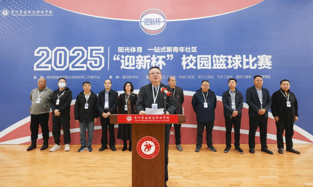 学院党委书记杨志宏发表致辞,他代表学院党委向赛事开幕表示祝贺,向筹备人员与裁判员致以敬意,向参赛运动员及现场的老师同学们送上立冬问候。“古人云‘冬藏为春生蓄力’,篮球运动中的协作与拼搏,正是青春最好的‘冬藏’方式。”杨志宏书记指出,此次“迎新杯”历经一月预选赛淬炼,10 支晋级队伍的脱颖而出,恰如立冬“水始冰、地始冻”后的坚韧生机,赛事不仅是校园文化盛事,更是帮助新生融入集体、锤炼品格的重要平台。