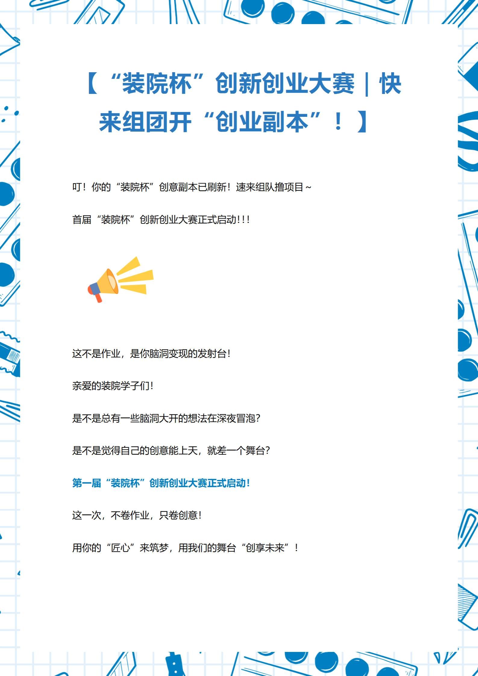 “装院杯”创新创业大赛|快来组团开“创业副本”!