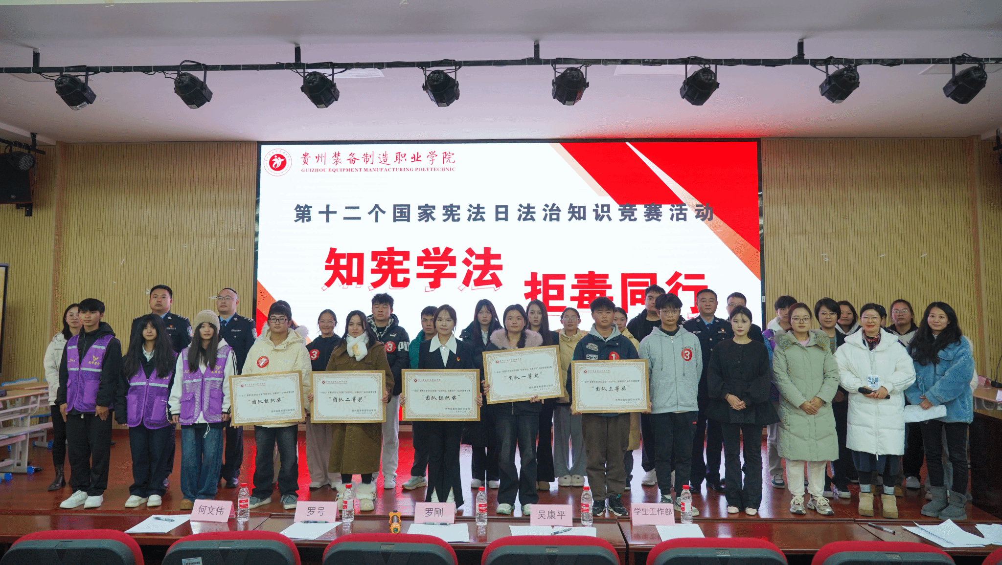在“宪法宣传周”期间,学校创新教育形式,将宪法学习与禁毒教育有机结合,组织各班级开展“宪法伴我们成长”歌曲传唱,并安排学生赴禁毒科普馆实地学习。12月4日国家宪法日当天,各班级与辅导员工作室设立多个分会场,同步参与全国“宪法晨读”,在庄严诵读中感悟宪法权威;举办“知宪学法 拒毒同行”法治知识竞赛,通过现场竞答与互动,使法治教育在严肃活泼的氛围中深入人