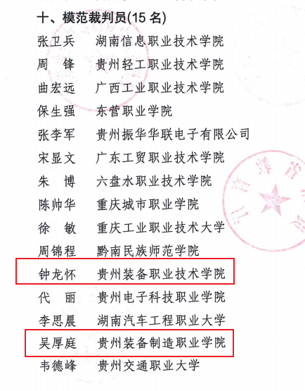 学院教师吴厚廷、钟龙怀在本次大赛中承担了裁判工作,以其严谨公正、专业细致的执裁表现,获评 “模范裁判员” ,体现了学院教师在行业内的专业权威与贡献。
