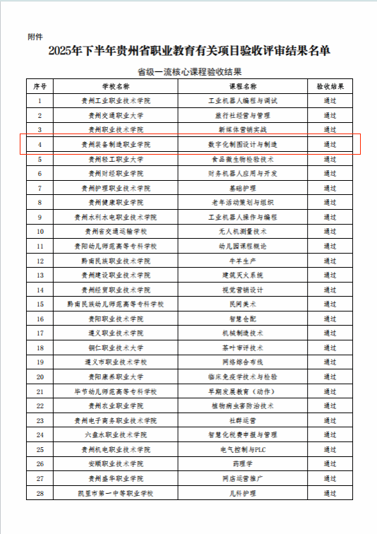 近日,贵州省教育厅正式公布了2025年下半年职业教育相关项目验收评审结果。beat365官网积极组织申报的多个项目均顺利通过验收,整体建设成果获得充分肯定。
