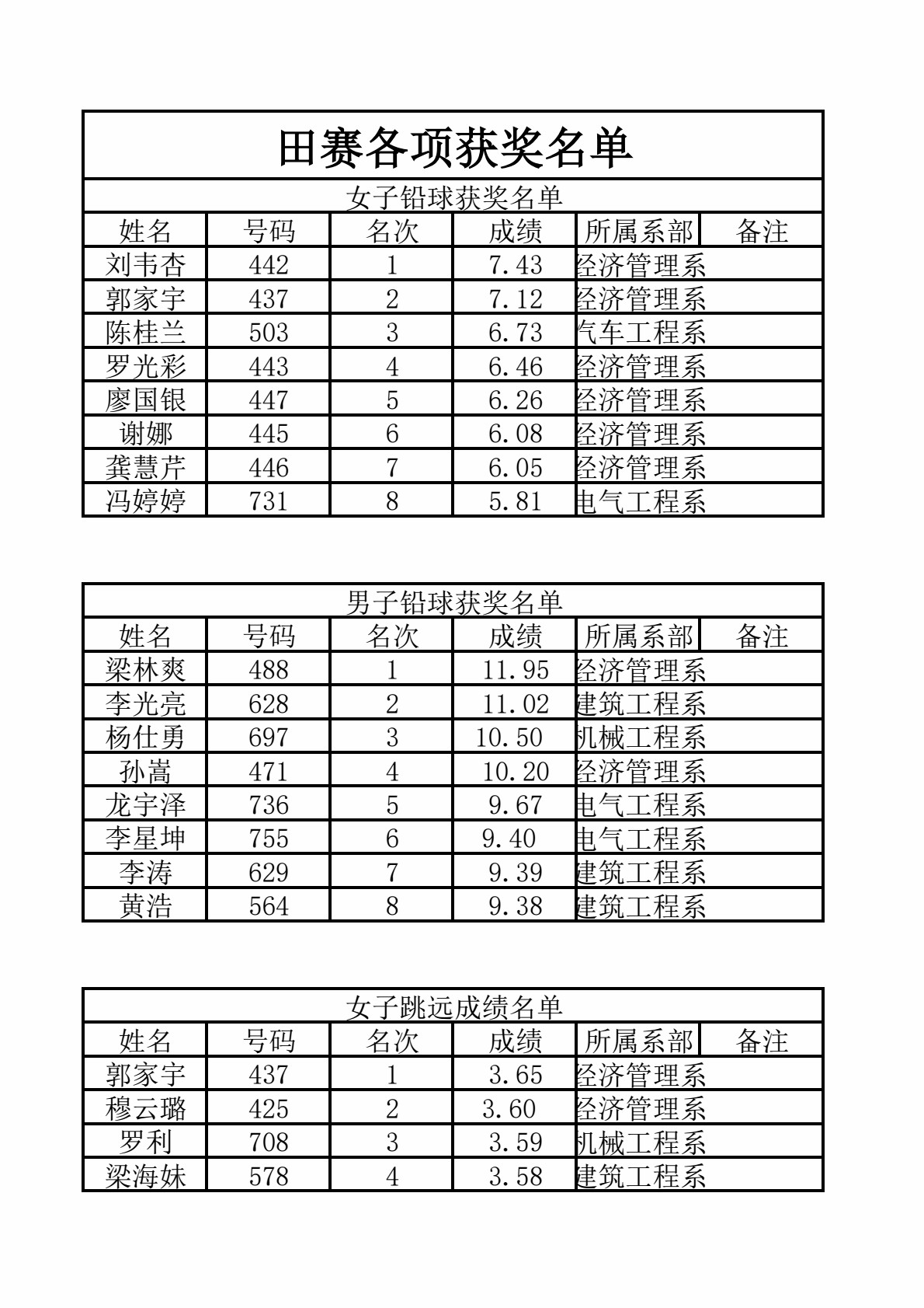 在2023年5月11日-12日,beat365官网举办了以“强健体魄 培根铸魂”为主题的院第四届田径运动会。经过学生两天的激烈比拼,总积分排名前三的系部为经济管理系、电气工程系、机械工程系,产生新纪录两项,破纪录三项次。