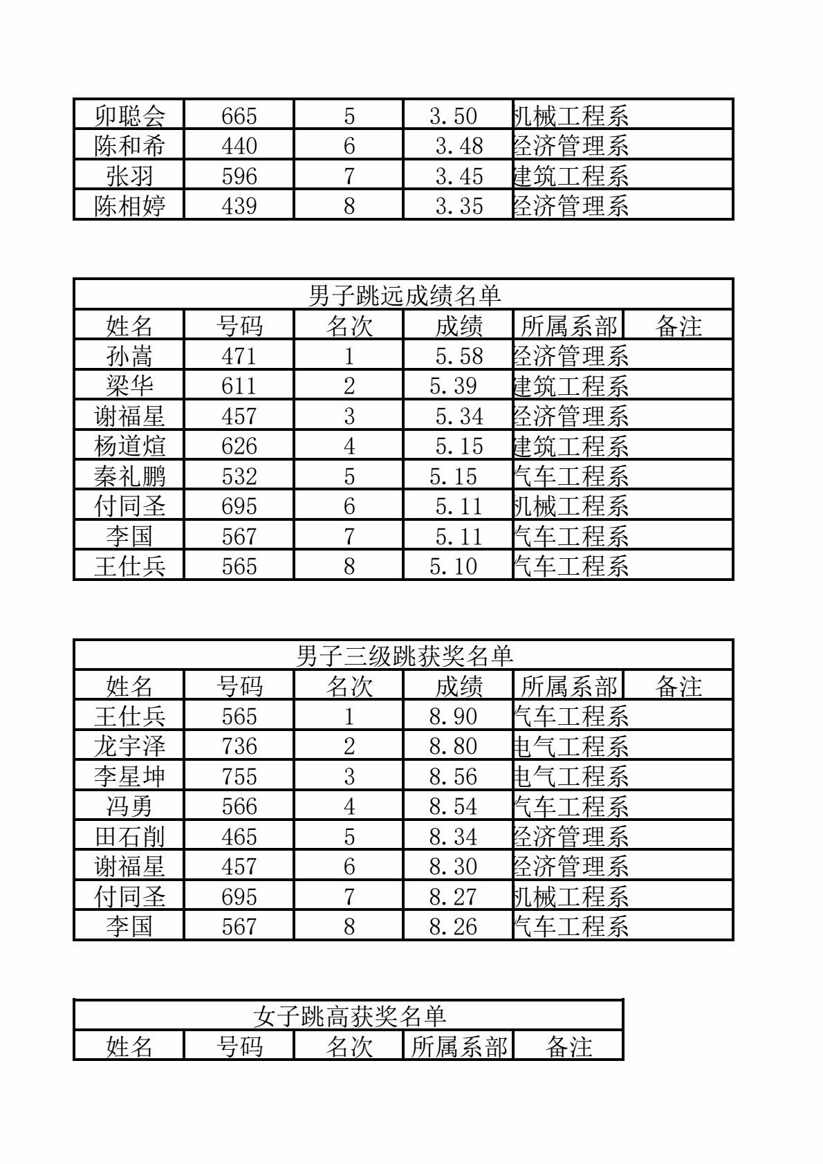 机械工程系代表队4*400米破纪录