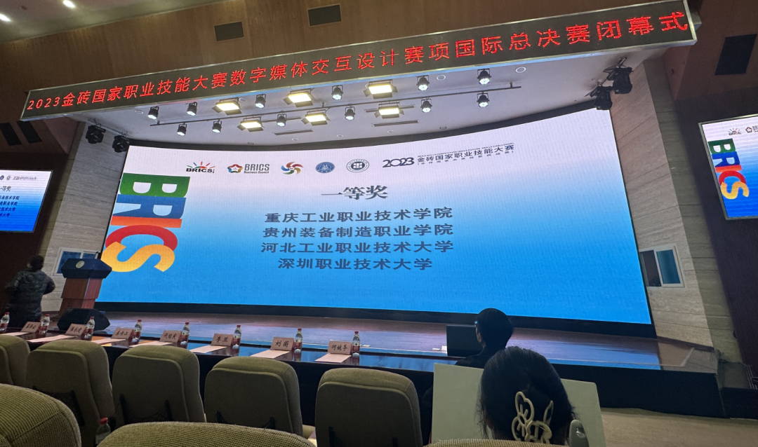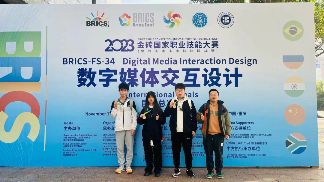 11月19日上午,在重庆工业职业技术学院闭幕的2023年金砖国家职业技能大赛数字媒体交互设计赛项国际总决赛中,beat365英国官方网站参赛队从61支国内外参赛队中脱颖而出,以总分第二的好成绩获得一等奖,同时与马来西亚拉曼理工大学并列收获银牌。