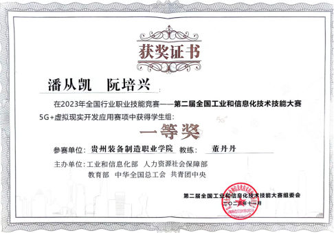 据悉,该获奖团队3年前开始着手在虚拟现实相关赛项上探索发力,从2022年获省级三等奖,到今年10月获贵州省一等奖并作为贵州省参赛代表队到浙江绍兴参加国赛,一路走来,打造了学生训练团队、教师指导团队以及相关工作室和实训室,为获得本次来之不易的成绩提供了有效保障。