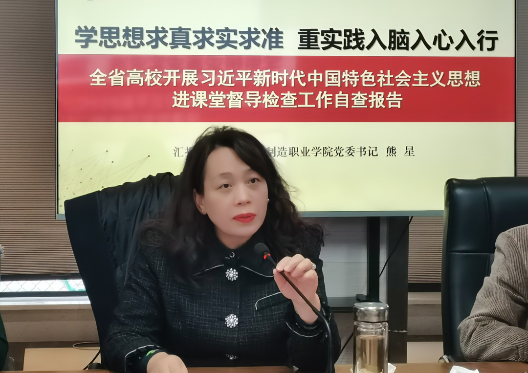 汇报会上,党委书记熊星从组织管理、教学管理、队伍管理、学生发展等方面对学校开展习近平新时代中国特色社会主义思想进课堂相关情况进行了汇报。