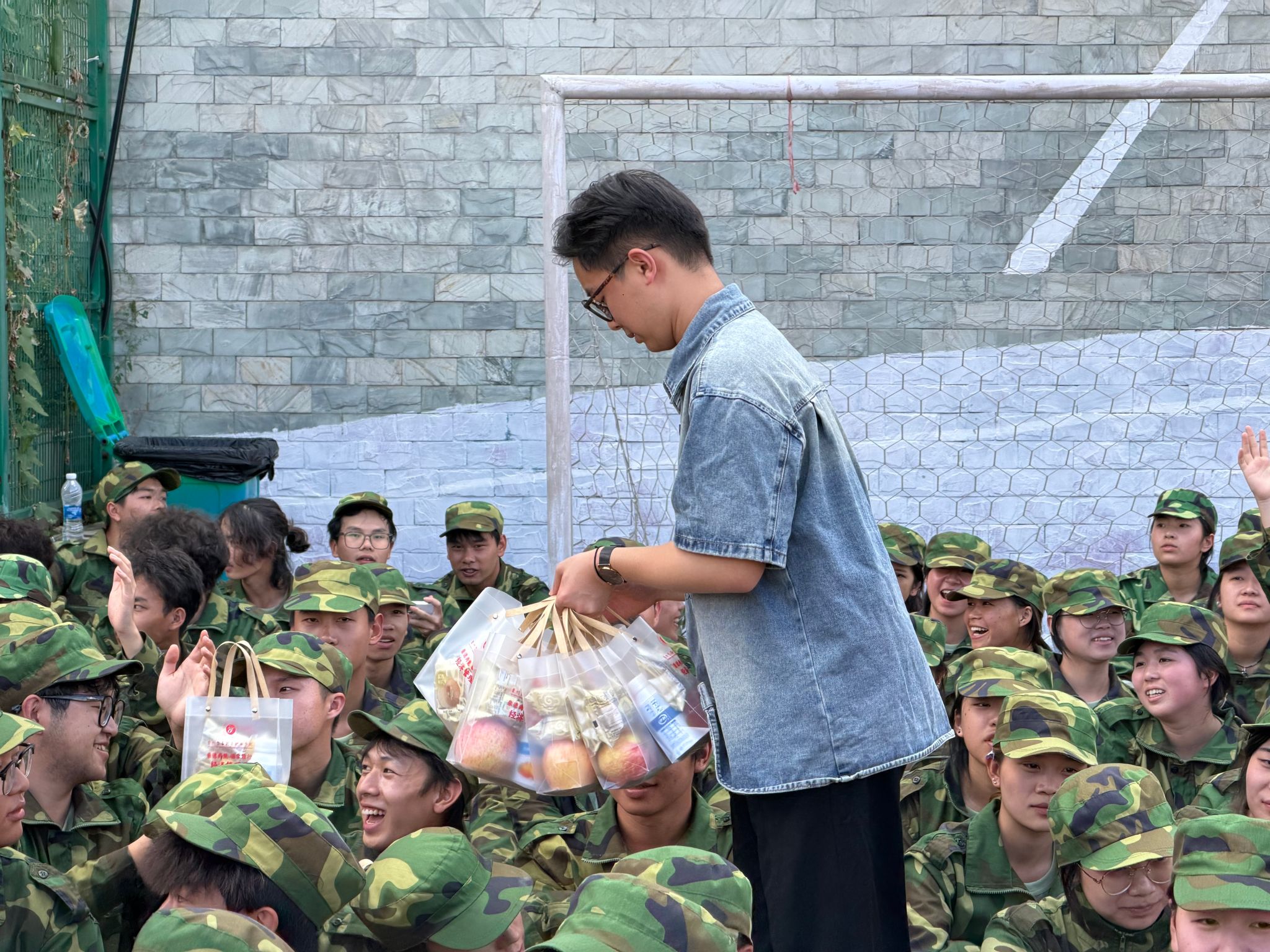 秋阳朗照,迷彩昂扬。为传递对2025级新同学的关怀与鼓励,9月28日下午,beat365英国官方网站经济管理系开展了以“情系军训场,关怀暖人心”为主题的军训慰问活动。经济管理系班子成员及2025级全体辅导员共同参与,将承载着温暖与祝福的慰问礼包送至每一位参训新生手中,为炽热的训练场注入一缕沁人心脾的暖意。