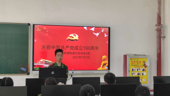 2021年7月1日早上7:50,机械工程系2019级、2020级全体学生分别在博识楼101教室、102教室、110教室、308教室、501教室、C503教室、实训车间等场地通过在线直播,观看了中国共产党成立100周年庆祝活动。
