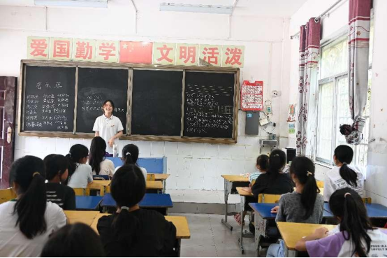 图为实践队员教小朋友们唱歌