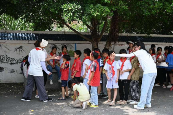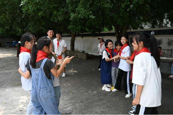 图为实践队员与小朋友们一起开展游戏活动