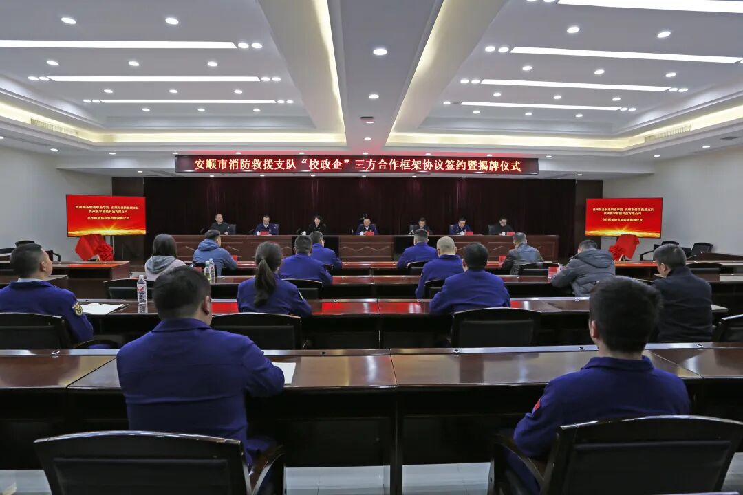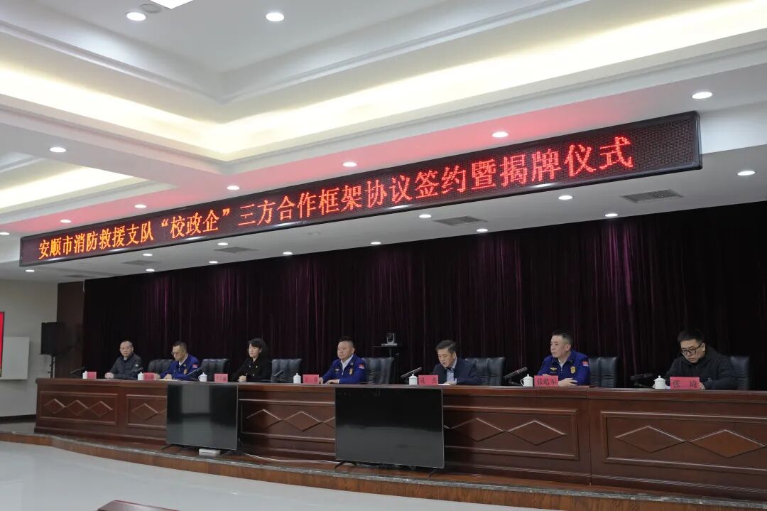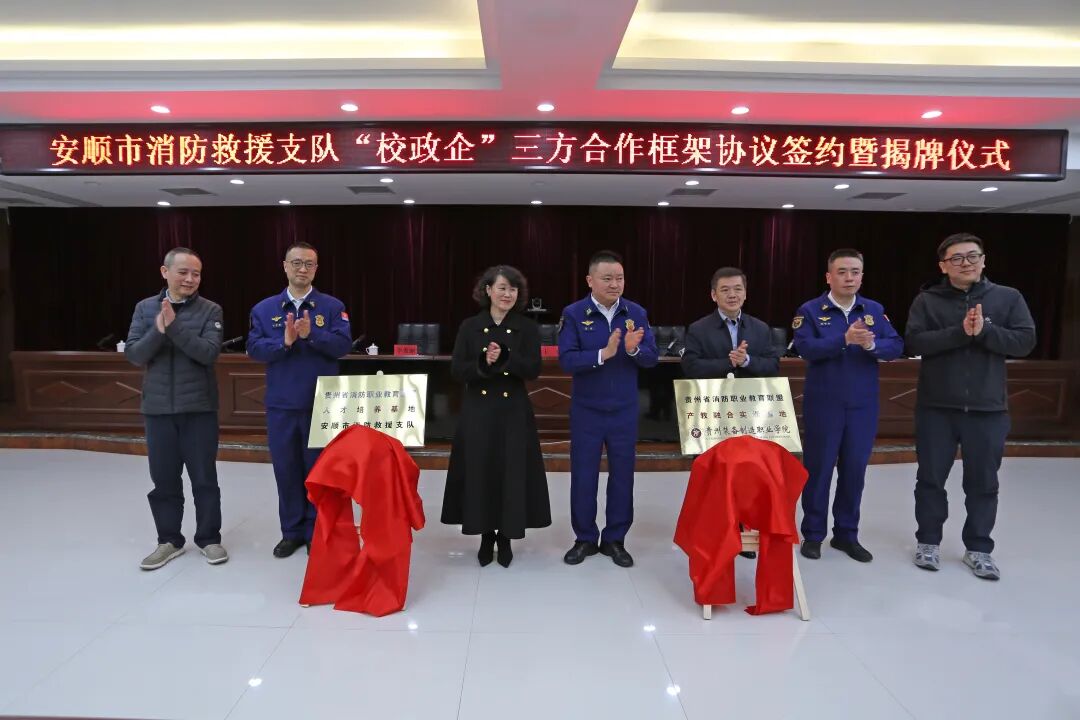 1月19日下午,beat365英国官方网站与安顺市消防救援支队、贵州视宇智能科技有限公司三方合作签约暨揭牌仪式在安顺市消防救援支队举行。此次合作是三方响应 “贵州省消防职业教育联盟” 战略部署、推动联盟实体化运行的生动实践,标志着三方在协同育人、服务区域应急管理体系现代化方面迈出坚实步伐。