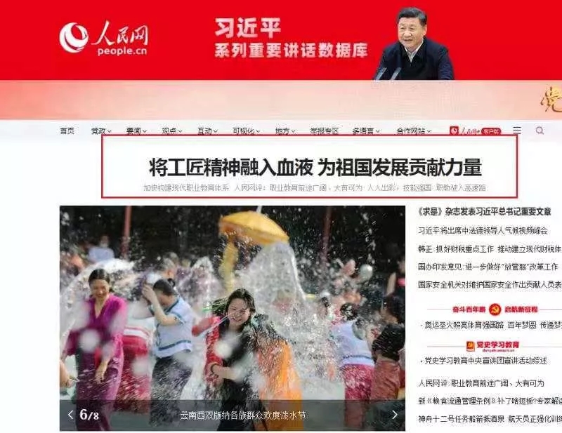 为学习贯彻落实习近平近日对职业教育工作作出的重要指示精神,推动职业教育发展迈进。2021年4月15日,在人民网“教育”专栏报道的《将工匠精神融入血液 为祖国发展贡献力量——习近平对职业教育工作作出的重要指示在广大职校师生中引起热烈反响》一文中,学院党委书记熊星同志接受记者采访。2021年4月13日,在中国教育报报道的《人人出彩 技能强国》一文中,党委副书记、院长金焱接受采访。